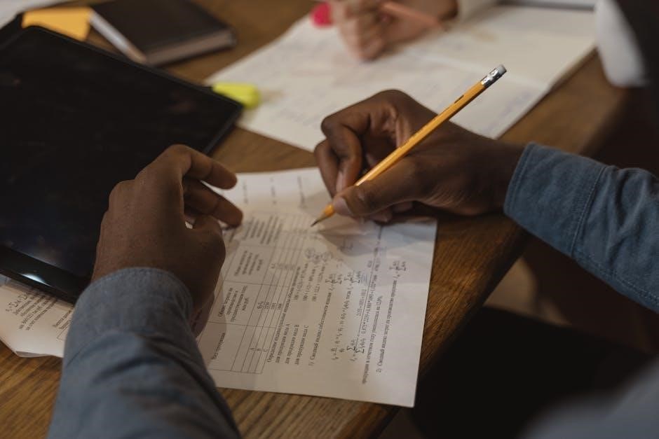 Many websites offer GCSE Maths equivalency test past papers in PDF format, allowing easy downloading and printing. Platforms like Past Papers Co or Exam-Mate provide downloadable PDFs, enabling students to access materials offline. Printing options are straightforward, with most PDFs formatted for A4 paper. Students can organize printed papers into binders or folders for structured revision. This flexibility ensures that learners can study anywhere, even without internet access. Additionally, PDFs often include answer sheets, making self-assessment convenient. Printing past papers is a cost-effective way to simulate exam conditions and enhance preparation.